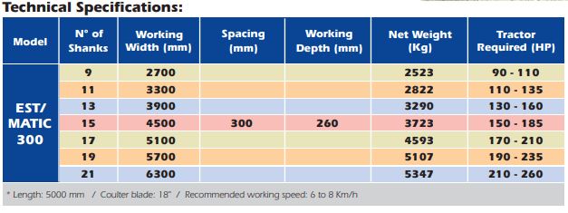 Ideal for use in no till field crops. The EST/MATIC 300 makes the scarification and soil decompression, resulting in a better raining water absorption and making easier the rooting for the next crops (better aeration).